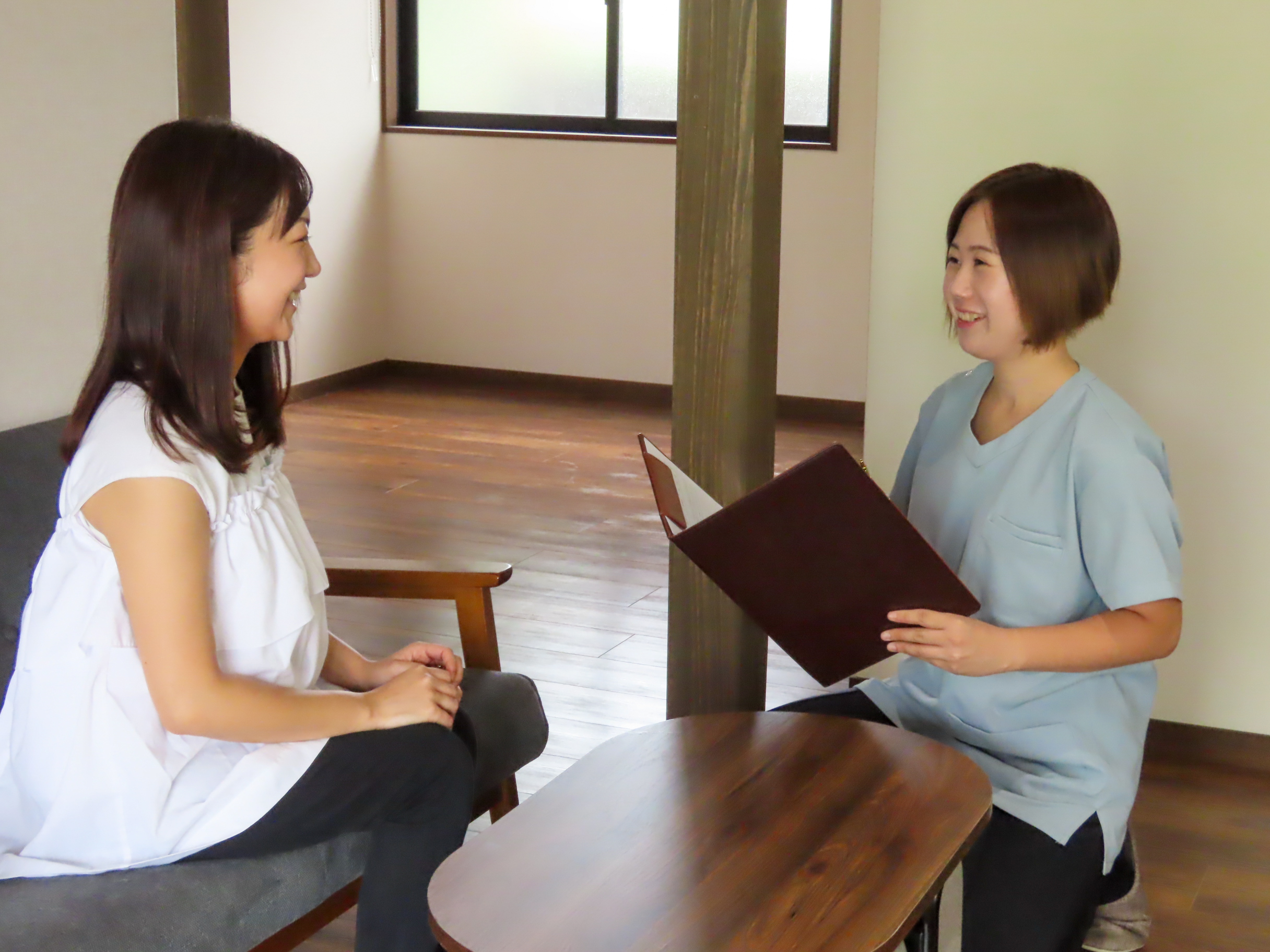 初回、お越しいただいた際は、あなたのご要望やお悩み、今までにどんなことに取り組まれてきたのか?など丁寧に話を伺います。